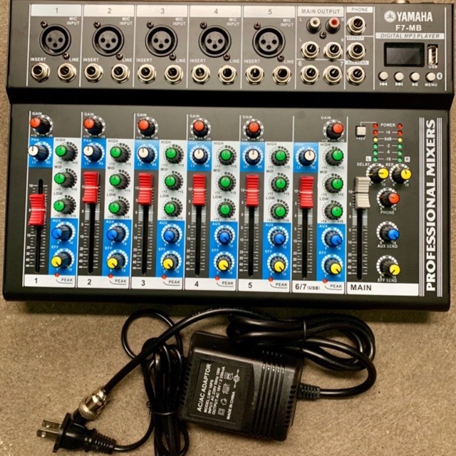- Nguồn điện của Mixer Yamaha F7 là 48V qua bộ đổi điện 220V (adapter).