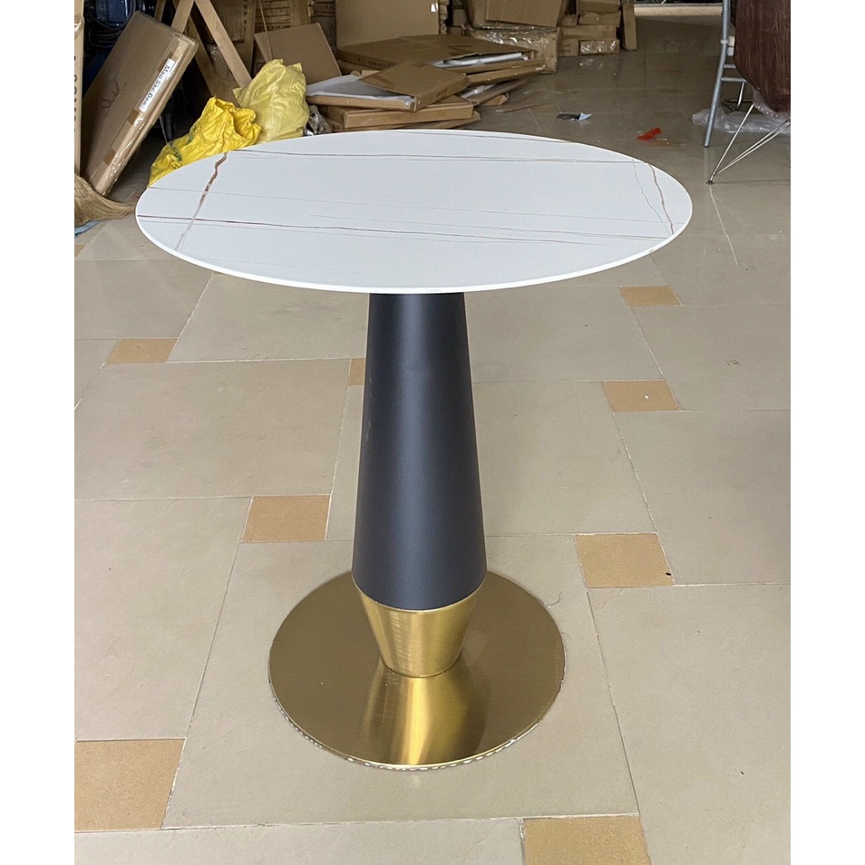 Nhà cửa & Đời sống > Nội thất > Bàn || Bàn tròn cafe chân sắt kết hợp inox mạ vàng, mặt đá phiến hoặc mica giả đá viển inox mạ vàng B36Còn hàng