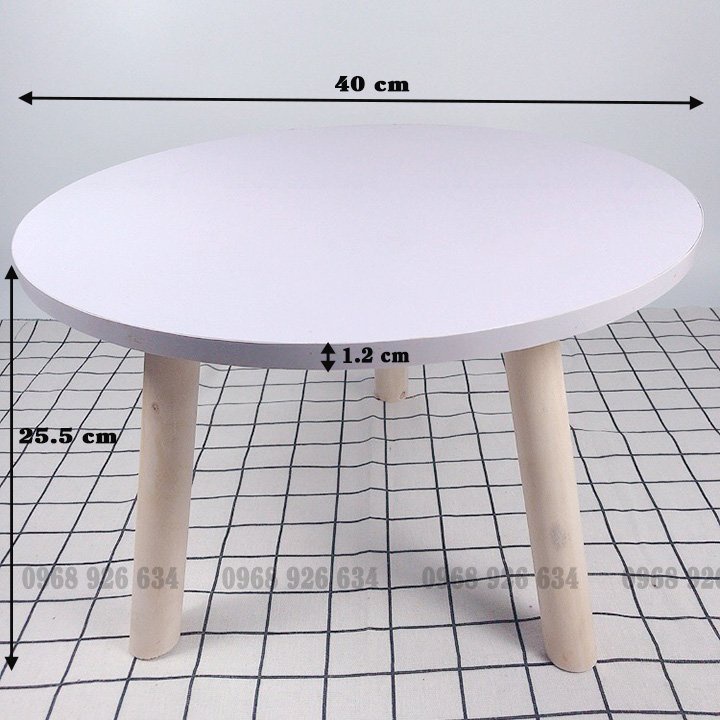 ✔️ Kích thước: Đường kính (mặt tròn) 40cm, Chiều cao 25,5cm, Mặt bàn dày 1,2 cm