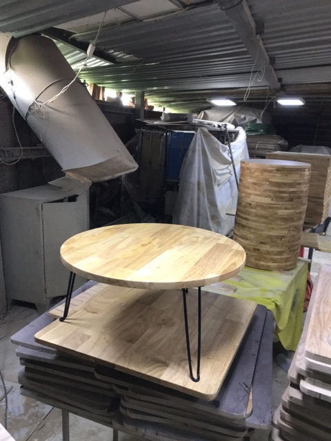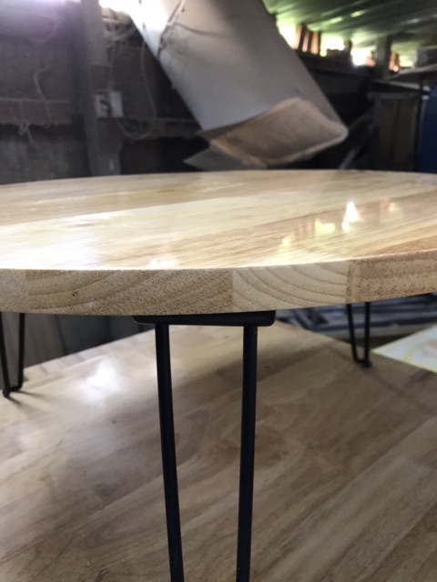 Mặt Bàn: Gỗ tự nhiên cắt tròn, Cạnh mài láng mịn, Sơn Phủ PU lót, Kháng nước. Gỗ đã qua sẻ sấy chống mối mọt có độ bền.