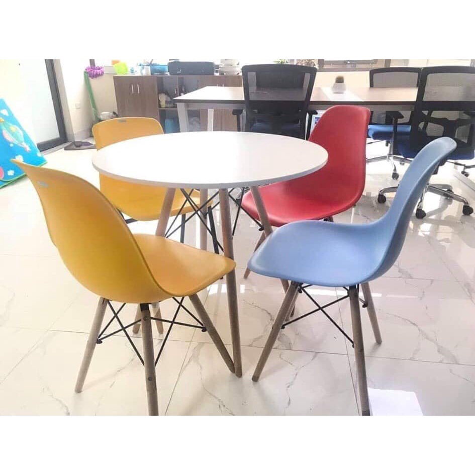- Bàn tròn Eames được sử dụng nhiều trong các không gian : bàn cafe , bàn ăn nhà hàng , bàn ăn gia đình , bàn văn phòng , bàn làm việc , bàn trà sữa .