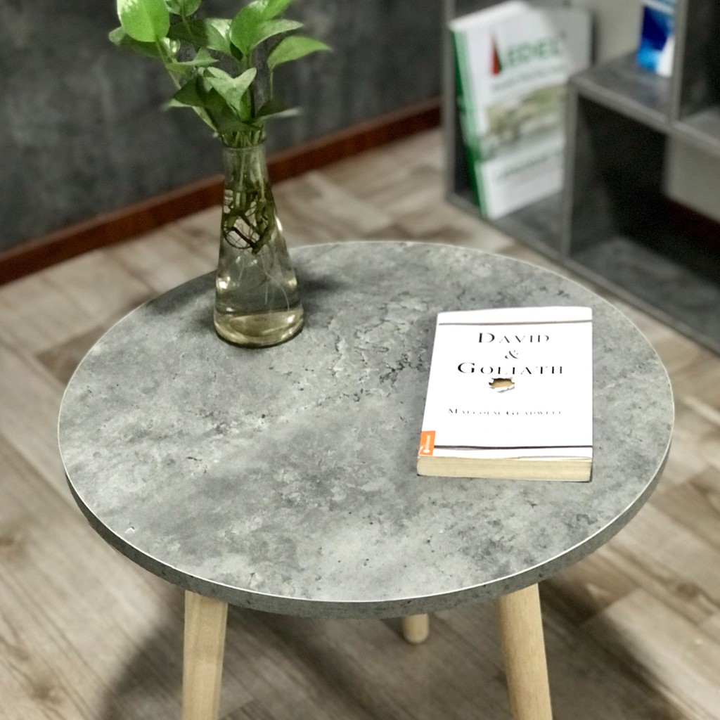 Bàn tròn sofa màu bê tông 3 chân gỗ tự nhiên chắc chắn sang trọng thương hiệu TADA (Zp04).