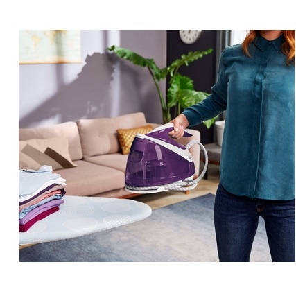 -Hơi phun mạnh liên tục có thể ủi phẳng ngay cả các vết nhăn khó ủi. Ngoài ra còn có tính năng tăng cường hơi phun bổ sung nếu cần để làm phẳng nhanh chóng các nếp nhăn, hoàn hảo khi ủi đứng hoặc ủi quần áo treo trên móc.