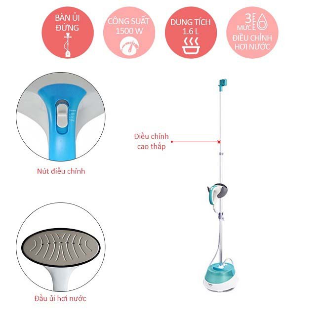 - Công suất 1500W, ủi phẳng quần áo nhanh chóng