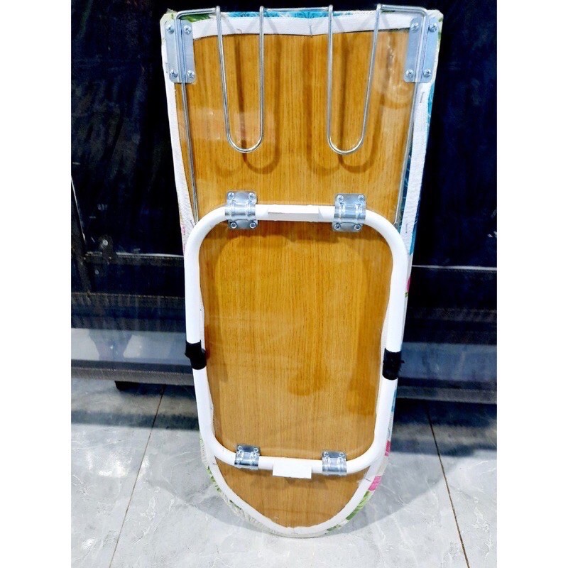-bàn ủi đồ có thể đứng và ngồi- Măt bàn được thiết kế bằng gỗ ép, lớt thêm lớp đệm vải tạo độ phẳng và chắc chắn cho bàn ủi