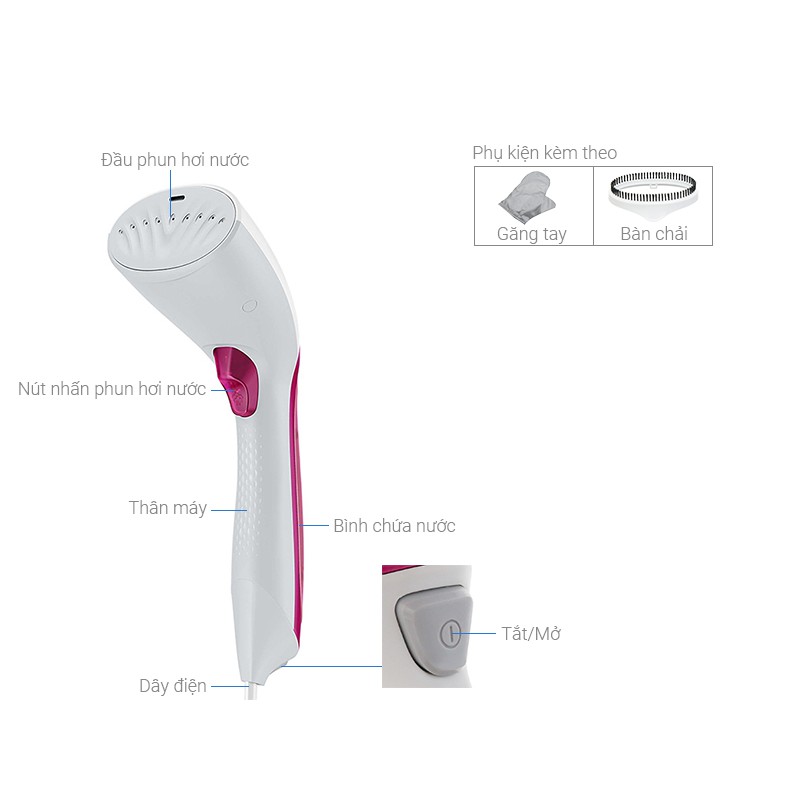 - Chức năng: Ủi hơi nước, Phun hơi tăng cường, Phun hơi thẳng đứng.