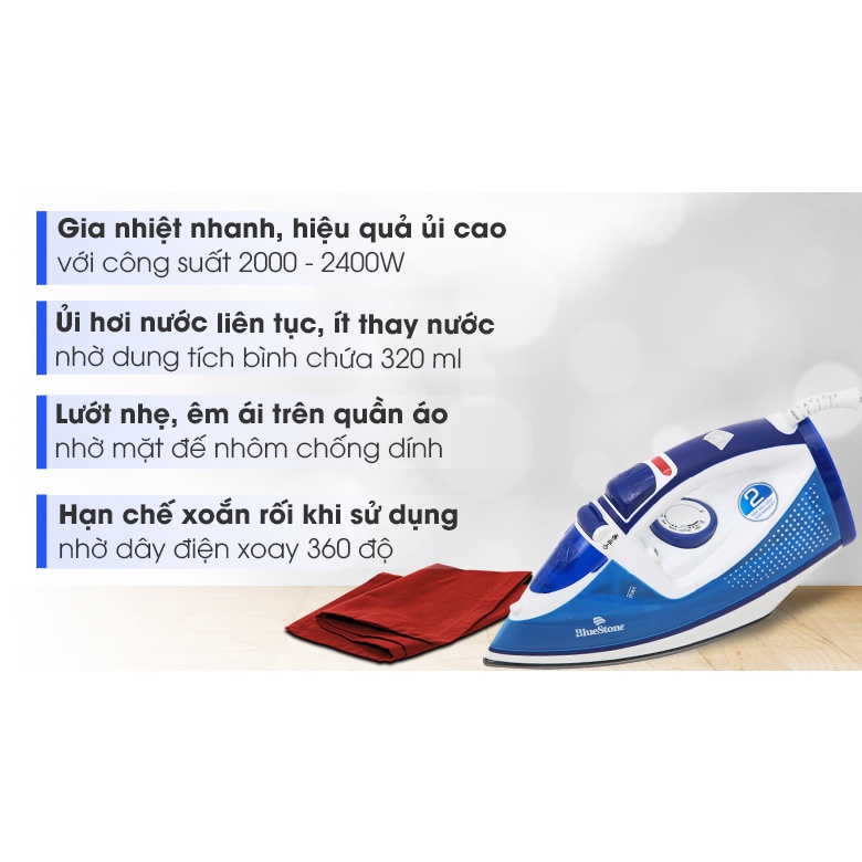 [Mã ELHAMS5 giảm 6% đơn 300K] Bàn ủi hơi nước Bluestone SIB-3806 , Công Suất 2400W , Bảo hành chính hãng 2 năm