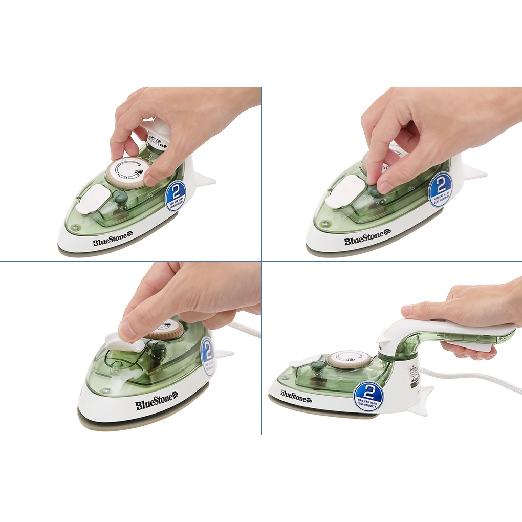 ● Bàn ủi hơi nước Bluestone được thiết kế độc đáo sử dụng tay cầm quay 180 độ giúp ủi quần áo thuận tiện và cất giữ dễ dàng hơnHiệu điện thế linh hoạt 110-120V và 220-240V thích hợp đi du lịch trong và ngoài nước. Công suất từ 1200W làm nóng nhanh, tiết kệm thời gian.