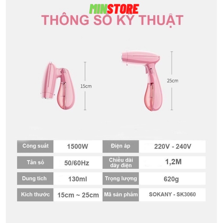 Giới thiệu Bàn ủi hơi nước cầm tay gấp gọn, Bàn là hơi nước SONAKY SK-3060 công suất 1500W mẫu mới 2021
