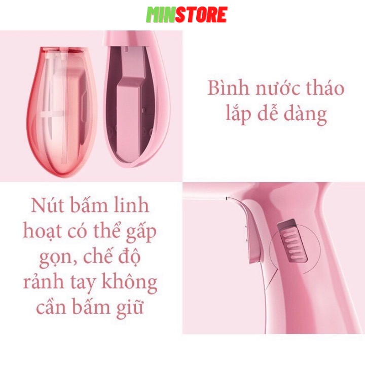 - Bàn là hơi nước cầm tay Cao Cấp phiên bản gấp gọn dễ dàng mang theo khi đi du lịch, đi công tác mà không chiếm