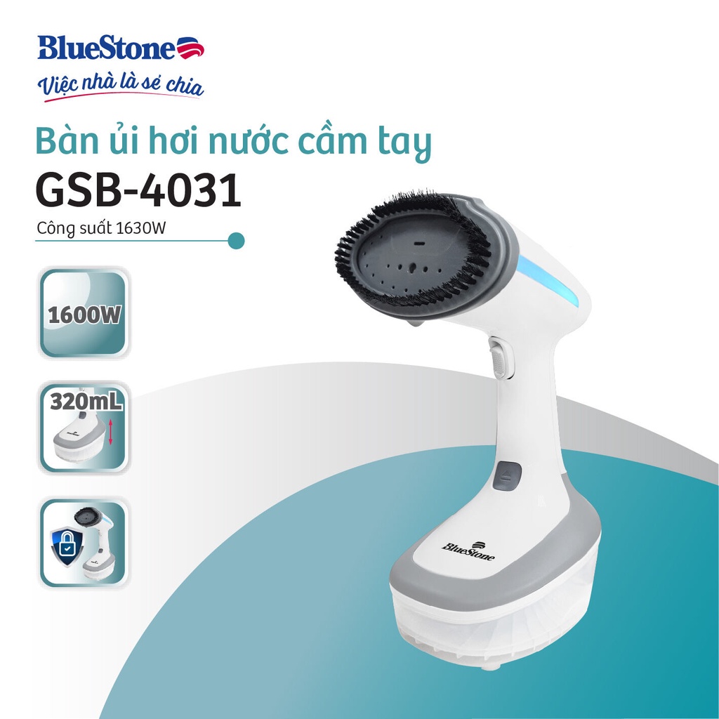 Thiết Bị Điện Gia Dụng > Thiết bị điện gia dụng nhỏ > Bàn là khô & Hơi nước || Bàn ủi hơi nước cầm tay BlueStone GSB-4031 - Công suất 1370-1630W - Bình chưa 320 mL có thể tháo rời - Hàng Chính HãngCòn hàng