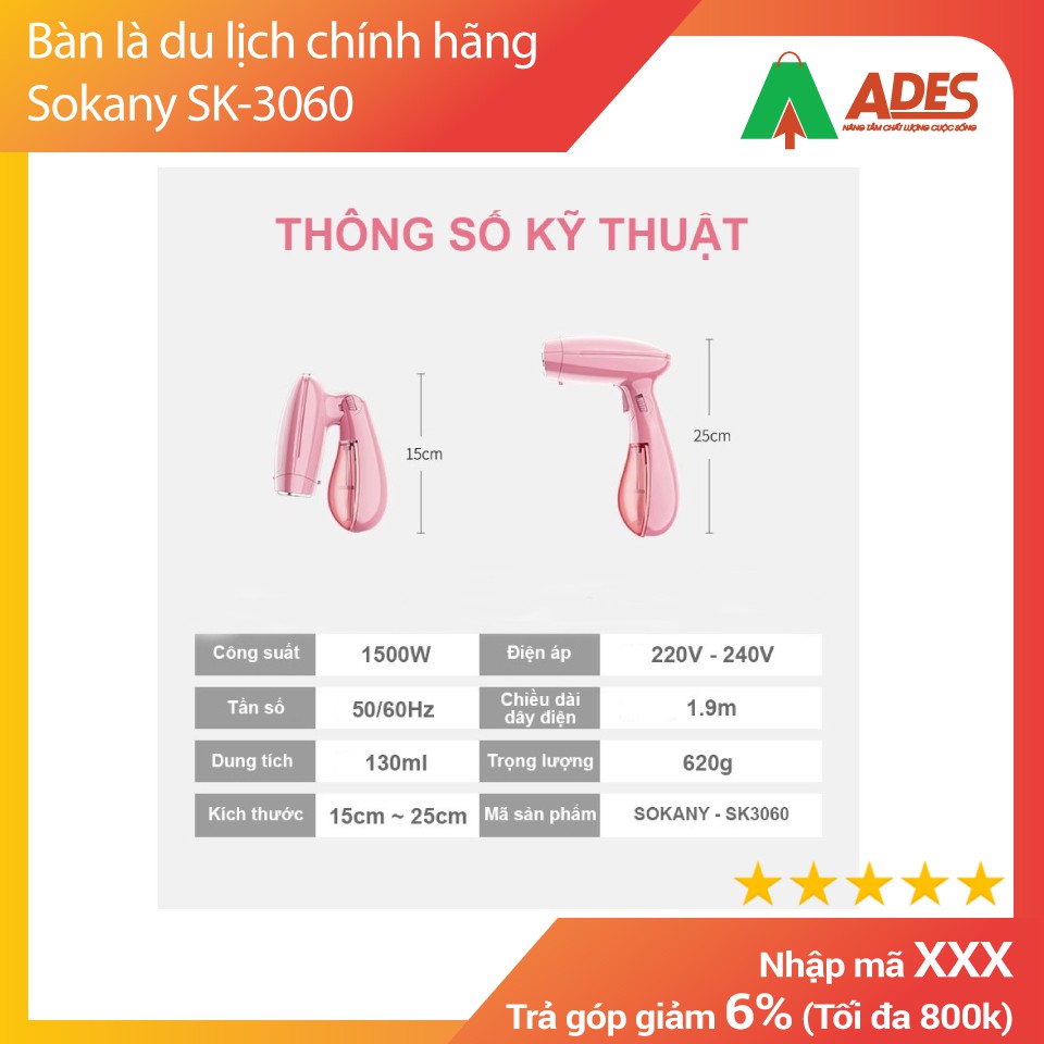Giới thiệu [Mã 154ELSALE2 giảm 7% đơn 300K] Bàn ủi hơi nước cầm tay Sokany SK-3060 - Chính hãng - Bảo hành 6 Tháng