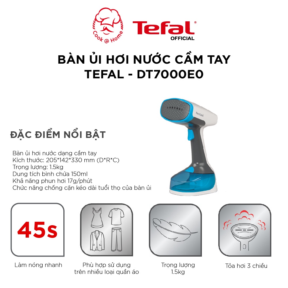 Bàn ủi hơi nước cầm tay Tefal DT7000E0THÔNG SỐ KỸ THUẬT SẢN PHẨM: