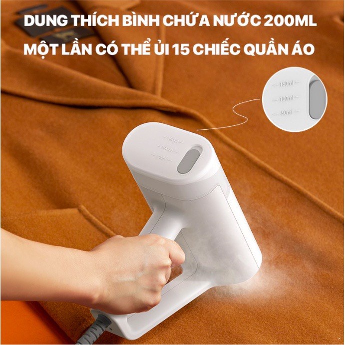 Bình chứa nước trong suốt , có thể nhìn thấy lượng nước trong bình , dung thích lơn với 200ml , có ba độ lượng nước , có thể tự chọn theo lượng quần áo , thêm một lần nước có thẻ ủi 15 phút