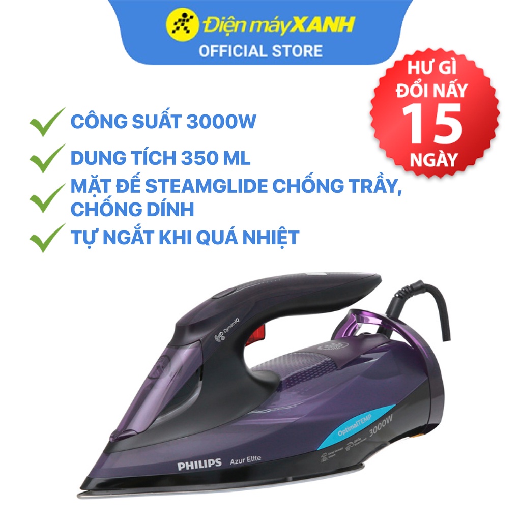 Thiết Bị Điện Gia Dụng > Thiết bị điện gia dụng nhỏ > Bàn là khô & Hơi nước || [Mã ELMALL1TR giảm 5% đơn 3TR] Bàn ủi hơi nước chống cháy Philips Azur Elite (GC5039)Còn hàng