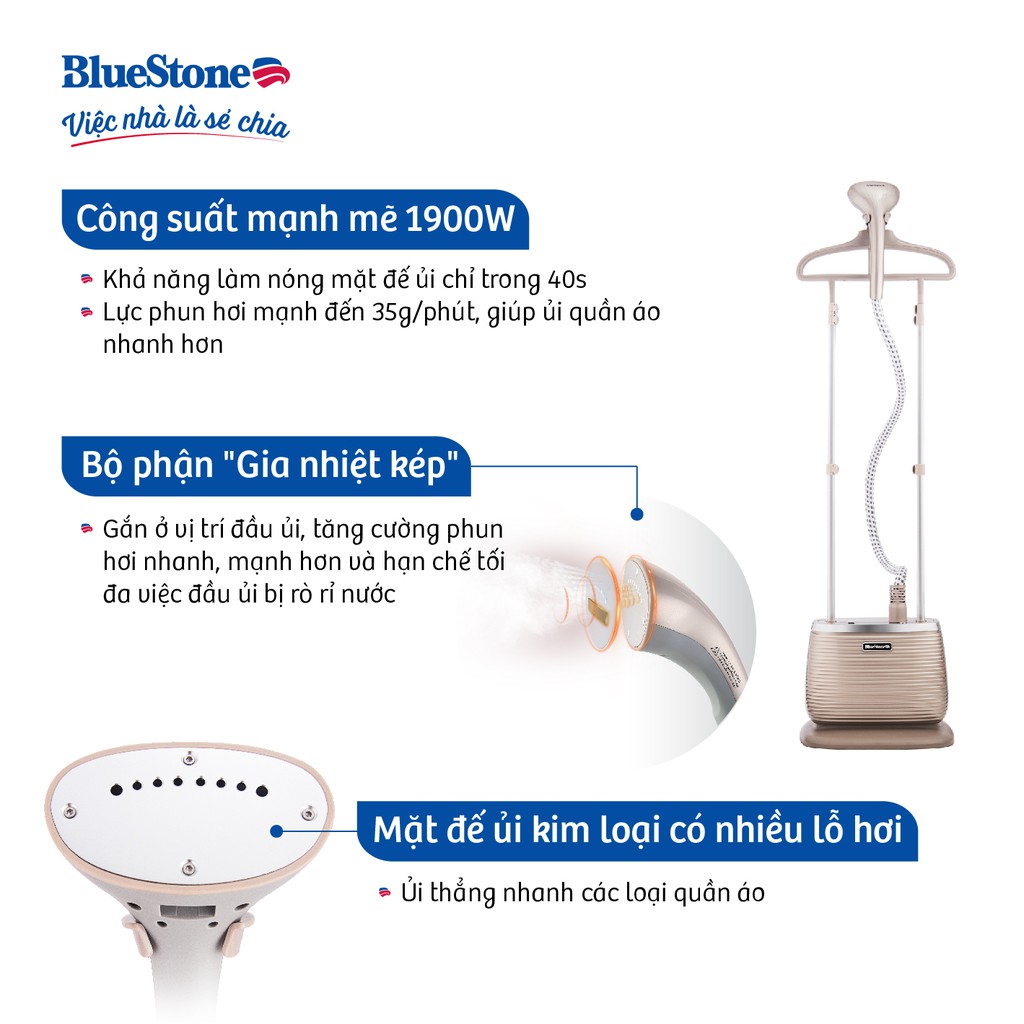 Bàn ủi hơi nước đứng BlueStone GSB-3951 Công suất bàn ủi lớn 1900 W gia nhiệt nhanh trong 40 giây