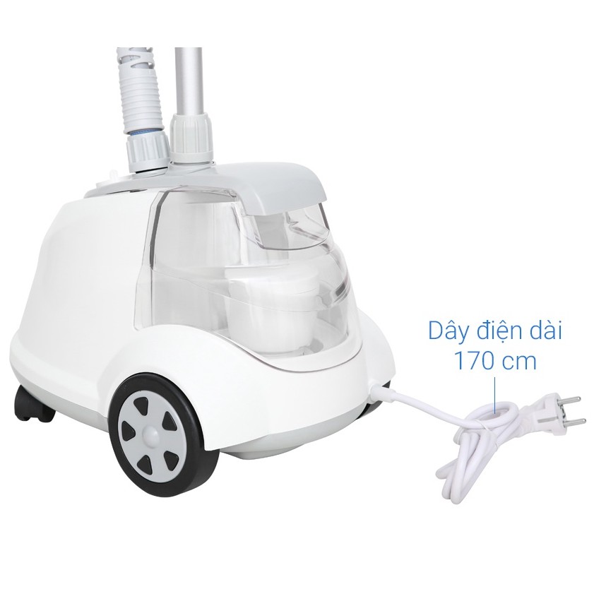 ● Bàn ủi hơi nước đứng Bluestone thiết kế hiện đại, màu trắng xám trang nhã, có bánh xe di chuyển linh hoạt, thuận tiện đến mọi địa điểm trong nhà● Trang bị bảng điều khiển núm vặn tương ứng cho phép người dùng tùy chỉnh 6 chế độ phun hơi nước dễ dàng