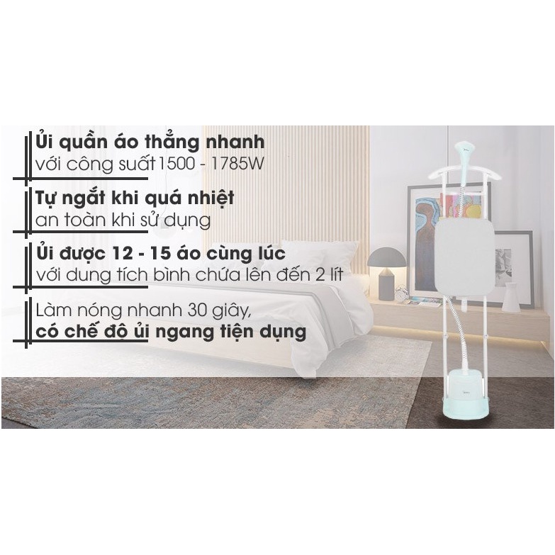 Bạn có thể chỉnh chiều cao phù hợp để ủi áo sơ mi, quần tây, áo choàng hay khăn, rèm cửa... Chiều cao trụ đứng phù hợp sẽ giữ cho cơ thể thoải mái khi là ủi, đồng thời giữ quần áo phẳng phiu hơn sau khi được là ủi.