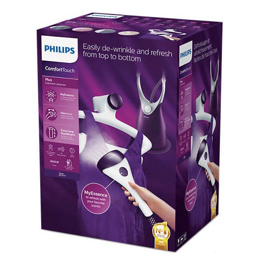 Bàn ủi hơi nước đứng ComfortTouch Plus Philips GC558 có ngăn chứa tinh dầu thơm MyEssence cải tiến của Philips giúp bạn làm mới quần áo bất kỳ lúc nào bằng mùi hương ưa thích.