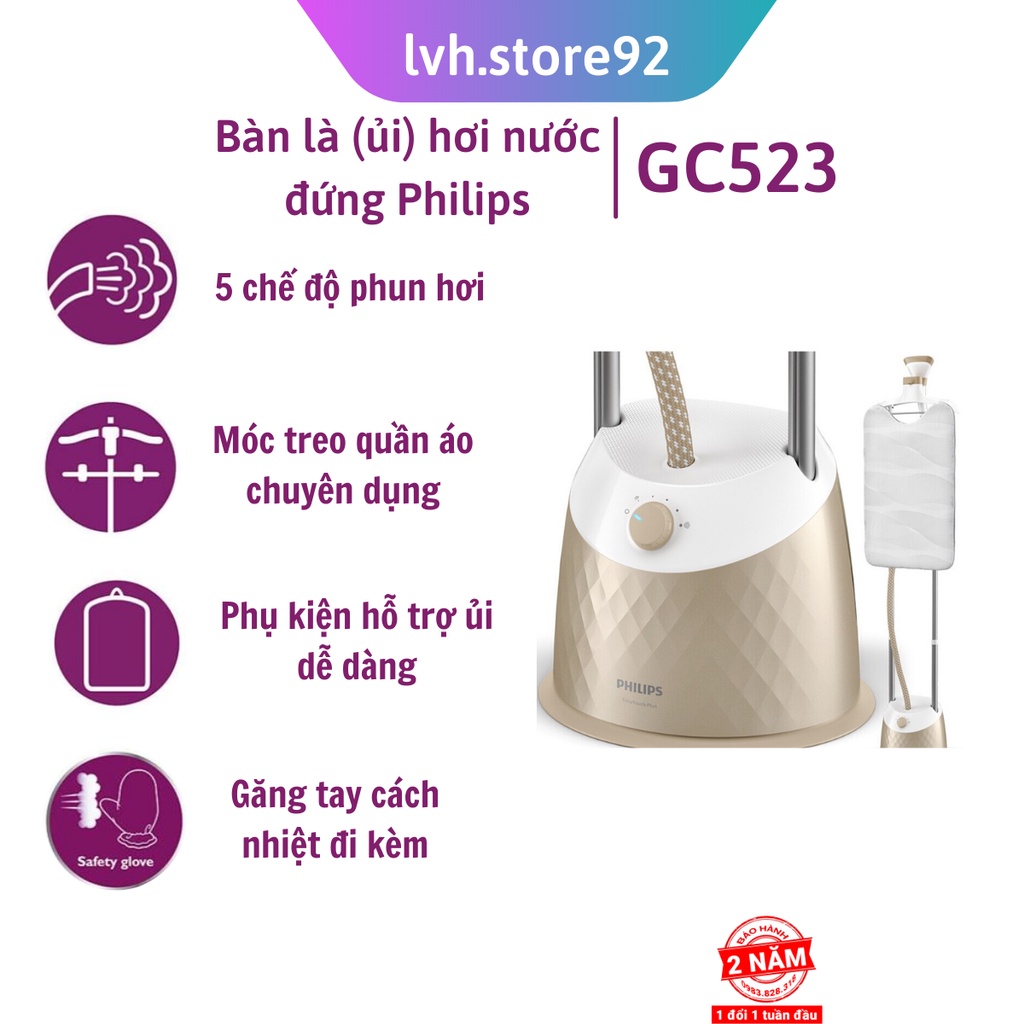 Bàn Ủi Hơi Nước Đứng Philips GC523 có giá treo đồ - BH 24 tháng [levanhung_75885]