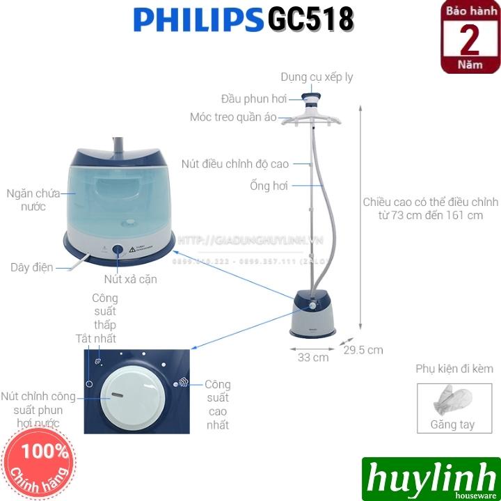 Giới thiệu [Mã 44ELSALE2 giảm 7% đơn 300K] Bàn ủi hơi nước đứng Philips GC518 - bảo hành 2 năm chính hãng