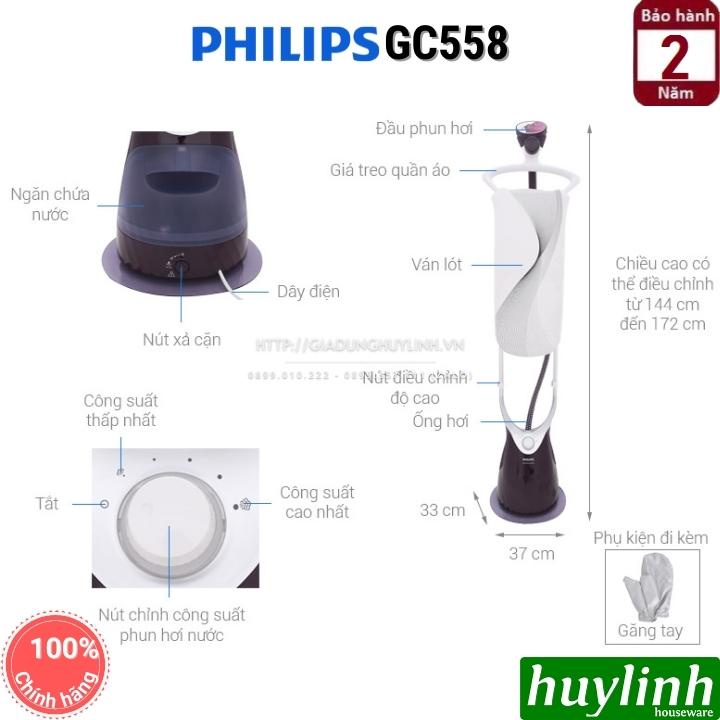 [Mã ELHAMS5 giảm 6% đơn 300K] Bàn ủi hơi nước đứng Philips GC558 - bảo hành 2 năm chính hãng