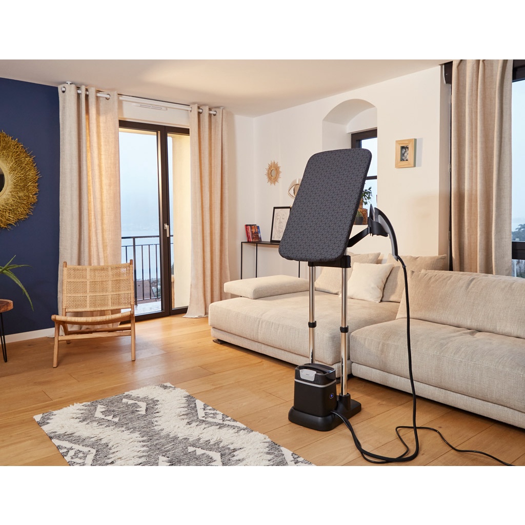 Bàn ủi hơi nước đứng Tefal QT1510E0 nổi bật với thiết kế đứng tiện lợi, người dùng sẽ không phải cúi người để ủi quần áo như những chiếc bàn là thông thường khác, mang lại sự thuận tiện và thoải mái khi sử dụng. Ngoài ra, thiết bị còn sở hữu cầu là độc đáo giúp bạn ủi thẳng mọi bề mặt vải một cách nhanh chóng, mà không còn phải tốn nhiều thời gian như trước nữa.