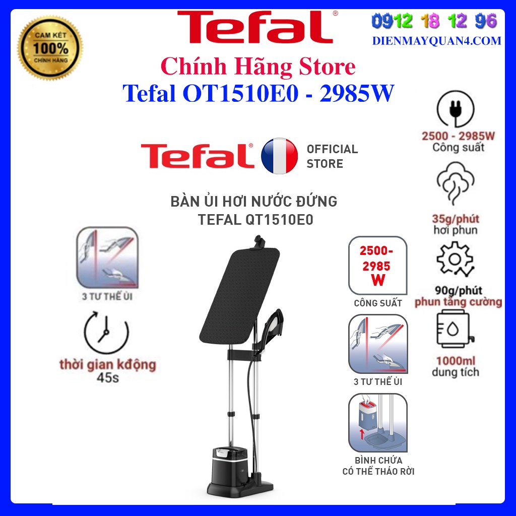 Thiết Bị Điện Gia Dụng > Thiết bị điện gia dụng nhỏ > Bàn là khô & Hơi nước || Bàn ủi hơi nước đứng Tefal QT1510E0, Hàng chính hãng, Mới 100%Còn hàng
