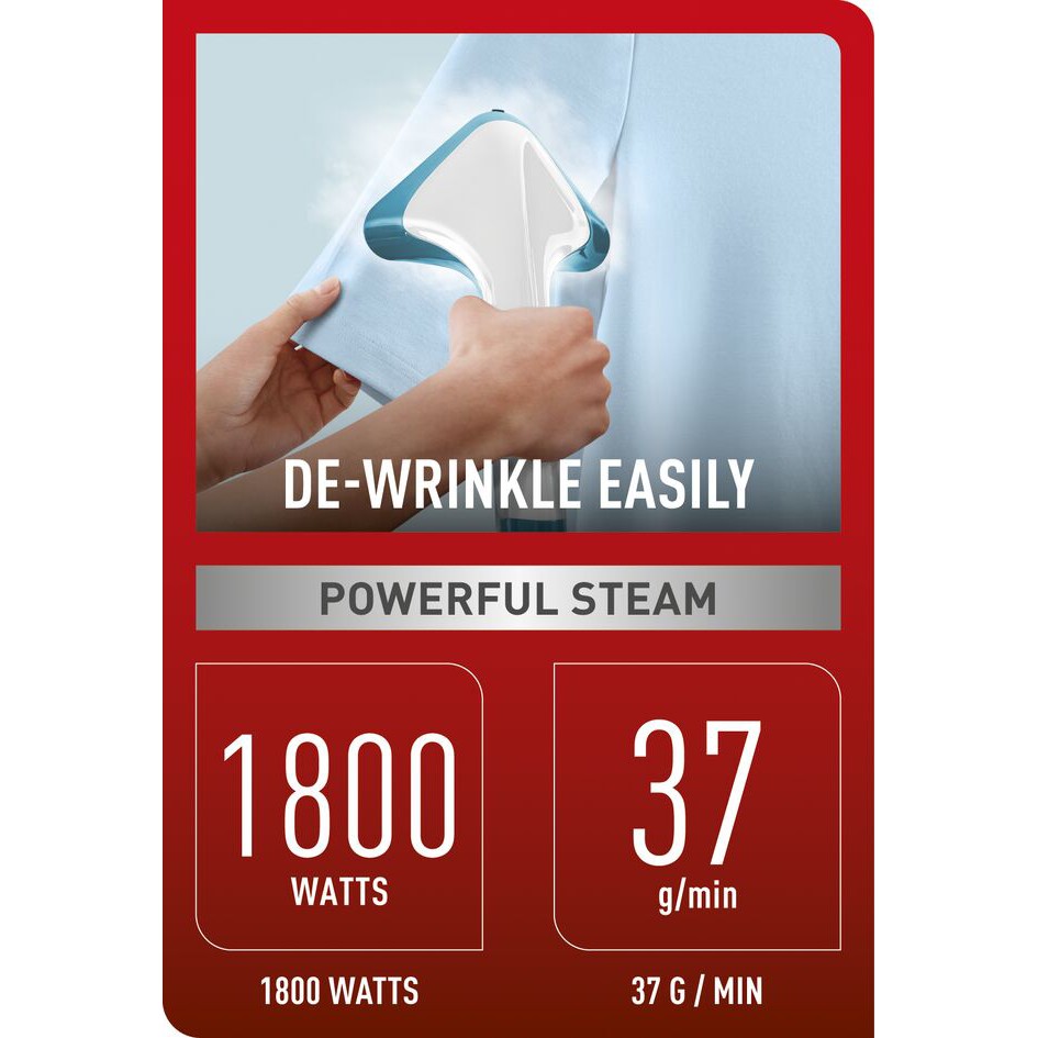 - Hoạt động với công suất lên tới 1800W sẽ giúp làm nóng nhanh bề mặt bàn ủi chỉ trong 45 giây giúp ủi nhanh và hiệu quả, tiết kiệm được điện năng và thời gian cho bạn. Trong quá trình hoạt động, bàn ủi có thể đạt tốc độ phun hơi là 37g/phút, xóa tan vùng nhăn trên quần áo hiệu quả