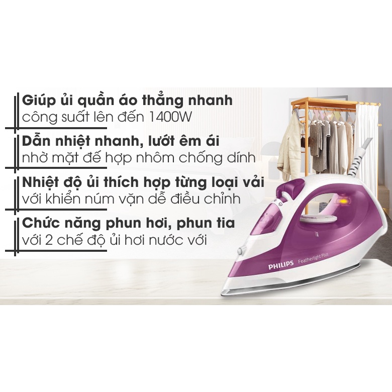 Giới thiệu Bàn ủi hơi nước gia đình Philips GC1426 - Hàng chính hãng (Bảo hành 2 năm tại các Trung tâm bảo hành Philips)