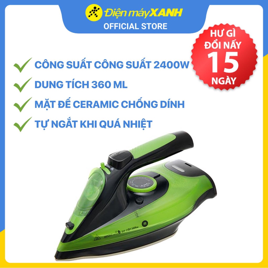 ● Hoạt động mạnh mẽ với công suất 2400W, làm nóng mặt đế nhanh, ủi thẳng đồ trong thời gian ngắn