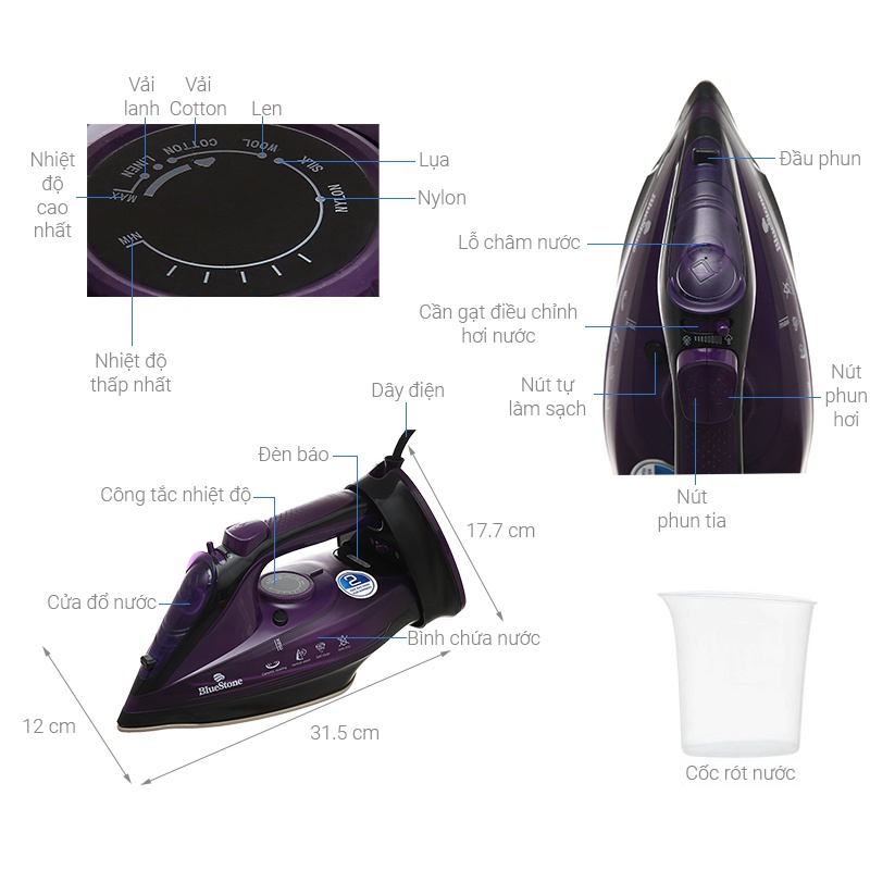 Thông số kỹ thuật Bàn ủi hơi nước Bluestone SIB-3854Loại bàn ủi : Bàn ủi hơi nước