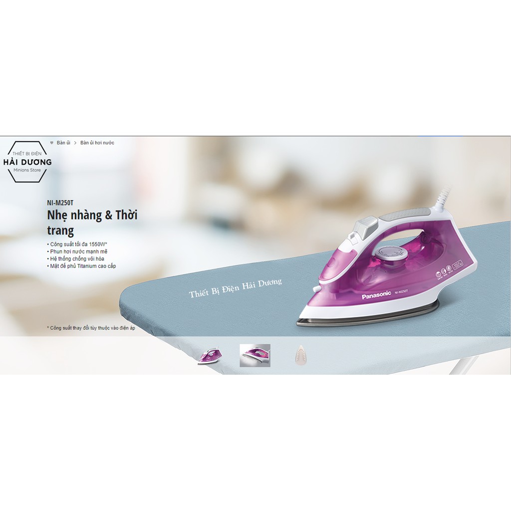 Giới thiệu Bàn ủi hơi nước Panasonic NI-M250T 1550w - Mặt đế Titanium chống dính - Dung tích 210ml - Bảo hành 12 tháng