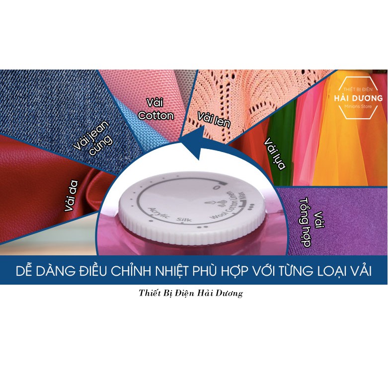 Núm vặn chỉ dẫn nhiệt độ ủi phù hợp với từng loại vải, bạn quan sát và chỉnh đúng mức nhiệt cho loại quần áo mình cần ủi