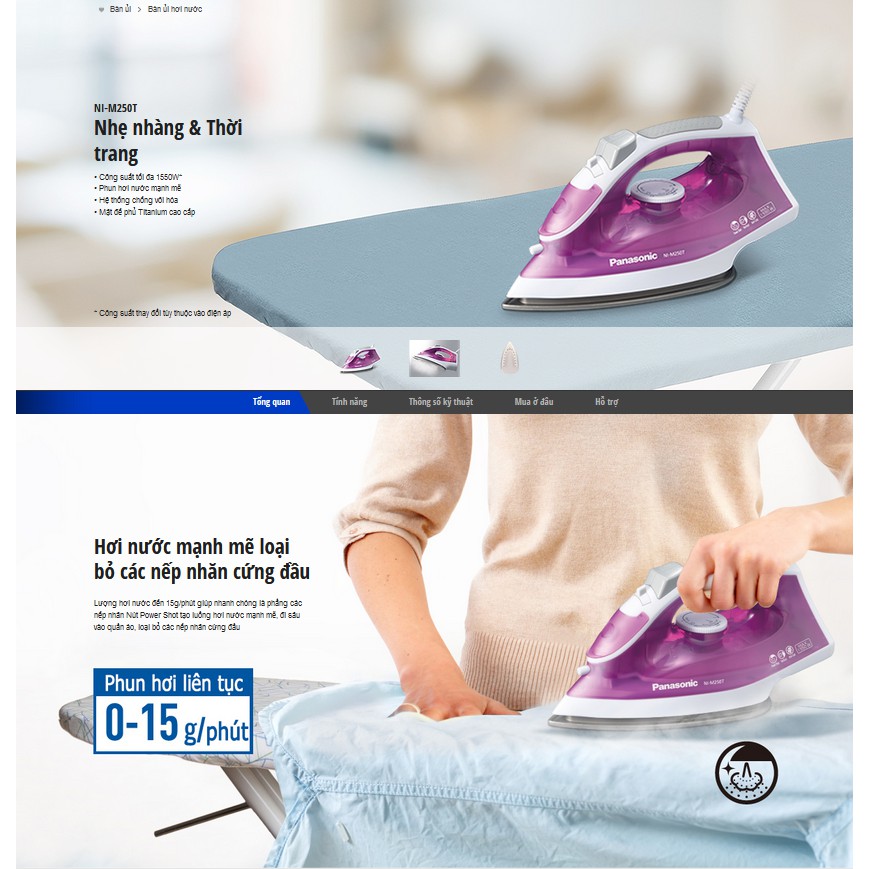 Giới thiệu Bàn ủi hơi nước Panasonic NI-M250TPRA NI-M300TARA NI-M300TVRA NI-E410TMRA (Hàng chính hãng)