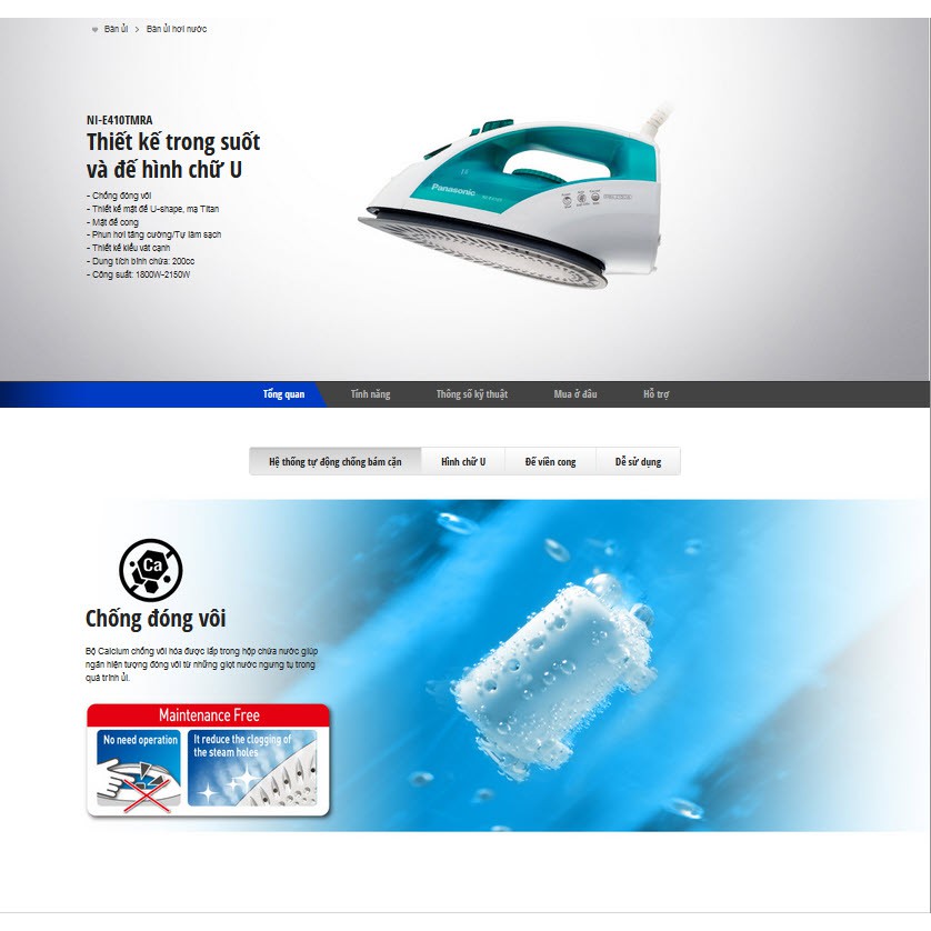 ▶ Chức năng chống đóng cặn - tự làm sạch giữ cho bàn ủi, nhất là các lỗ thoát hơi nước thông suốt, sạch sẽ