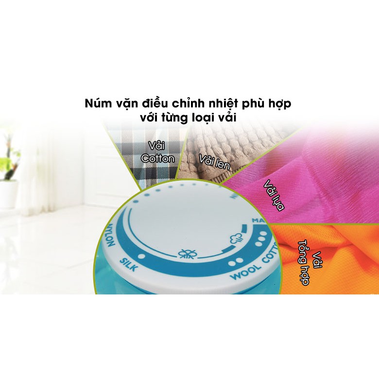 • Núm điều chỉnh nhiệt độ dễ dàng với từng chất liệu vải.