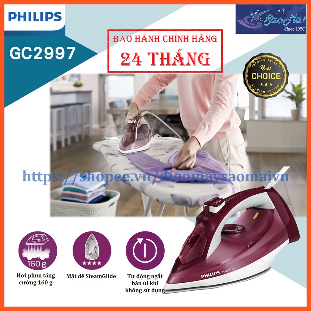 Bàn ủi hơi nước Philips GC2997 thay thế cho model GC2990 GC2992 GC2998