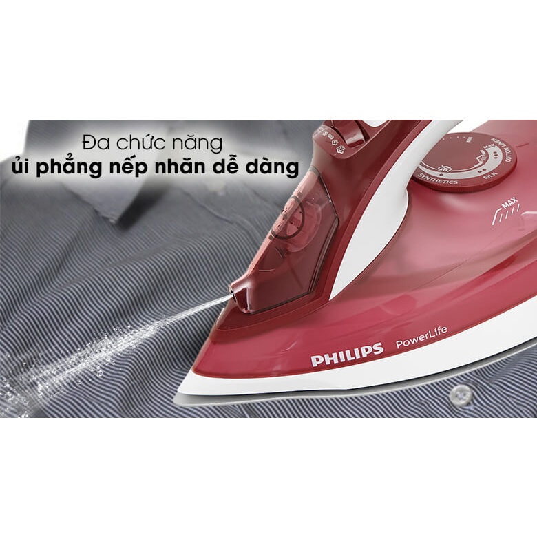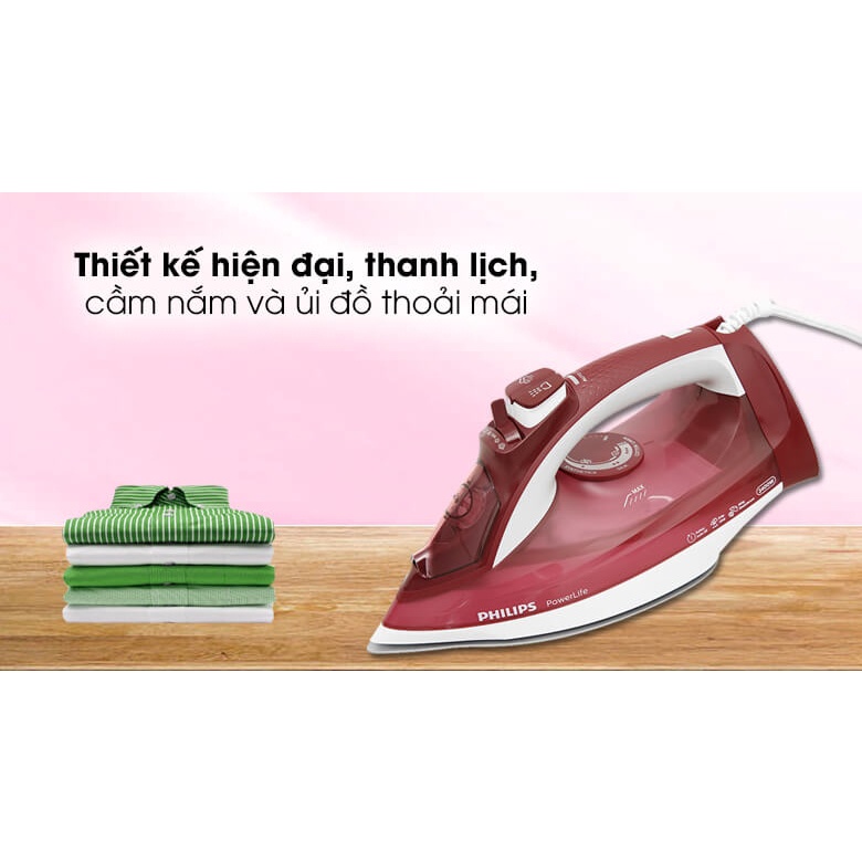 Bàn ủi hơi nước Philips mang thiết kế hiện đại, thanh lịch, màu đỏ đô nổi bật từ mọi góc nhìn