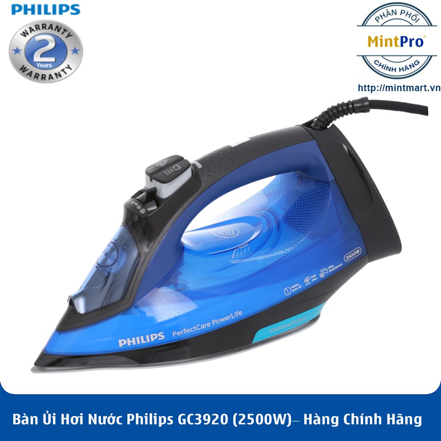 Bàn Ủi Hơi Nước Philips GC3920 (2500W) – Hàng Chính Hãng – Bảo Hành 2 Năm Toàn Quốc