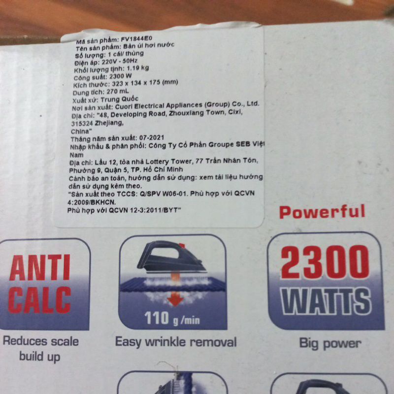 Thiết Bị Điện Gia Dụng > Thiết bị điện gia dụng nhỏ > Bàn là khô & Hơi nước || Bàn ủi hơi nước Tefal FV1844Còn hàng