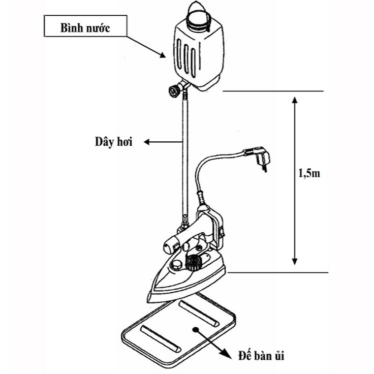 - Kiểu: Bàn ủi treo có bình nước.