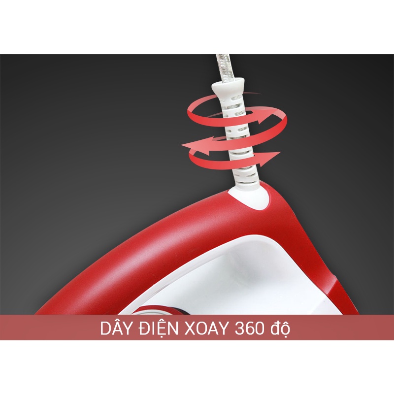 Dây điện dài, có chuôi xoay linh hoạt, chống rối dây, di chuyển bàn ủi theo mọi hướng mà không sợ bị vướng, khi cất giữ có thể quấn gọn dây một cách dễ dàng.