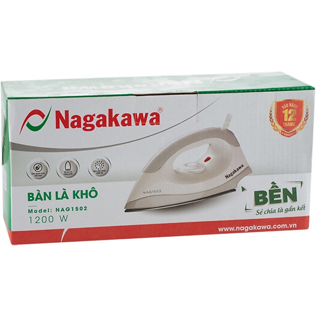 Thiết Bị Điện Gia Dụng > Thiết bị điện gia dụng nhỏ > Bàn là khô & Hơi nước || Bàn Ủi Khô Nagakawa NAG1502 - Màu Ghi - Hàng Chính HãngCòn hàng