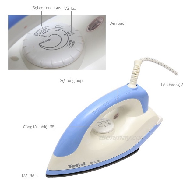 Thiết Bị Điện Gia Dụng > Thiết bị điện gia dụng nhỏ > Bàn là khô & Hơi nước || [Mã ELHADEV giảm 4% đơn 300K] Bàn ủi khô Tefal FS2525 1200W ( Trắng xanh ) - Hàng chính hãngCòn hàng
