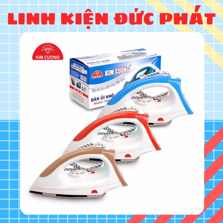 - Bàn ủi khô cao cấp Kim Cương T602 được thiết kế với kiểu dáng hiện đại và đẹp mắt, kích thước gọn nhẹ vừa tay cầm và dễ dàng sử dụng sẽ giúp bạn ủi thẳng quần áo một cách nhanh chóng.- Đặc biệt phần đế bàn ủi được làm bằng hợp kim và được phủ lớp men chống dính cao cấp đặc biệt giúp hạn chế làm cháy quần áo trong lúc ủi. Bên cạnh đó phần đế bàn ủi với thiết kế mũi nhọn thông minh, dễ dàng len lỏi và ủi phẳng ngay cả những vùng khó ủi nhất của trang phục như: cổ và vai áo, nút áo...