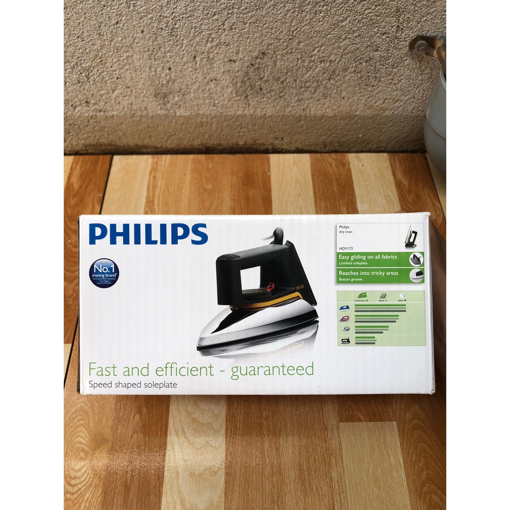 - Bàn ủi khô Philips HD1172 luôn giữ vững vị trí là “người tiên phong” trong thế hệ bàn ủi truyền thống chuẩn mực. Giờ đây, với thiết kế chắc chắn cùng các tính năng cơ bản được hoàn thiện hóa, bàn ủi Philips HD1172 sẽ biến việc chăm sóc quần áo của gia đình bạn sẽ trở nên dễ dàng hơn bao giờ hết.