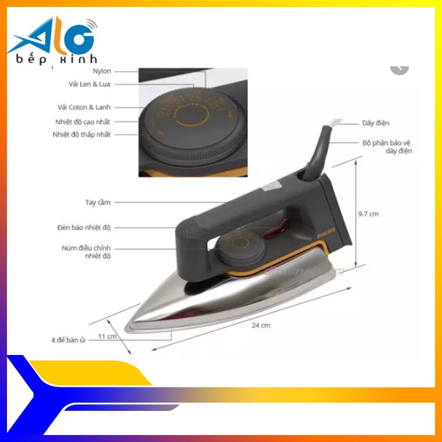 Thiết Bị Điện Gia Dụng > Thiết bị điện gia dụng nhỏ > Bàn là khô & Hơi nước || [Mã 44ELSALE2 giảm 7% đơn 300K] Bàn ủi Philips HD1172 (Xám bạc) - Tiết kiệm điện - Alo Bếp xinhCòn hàng