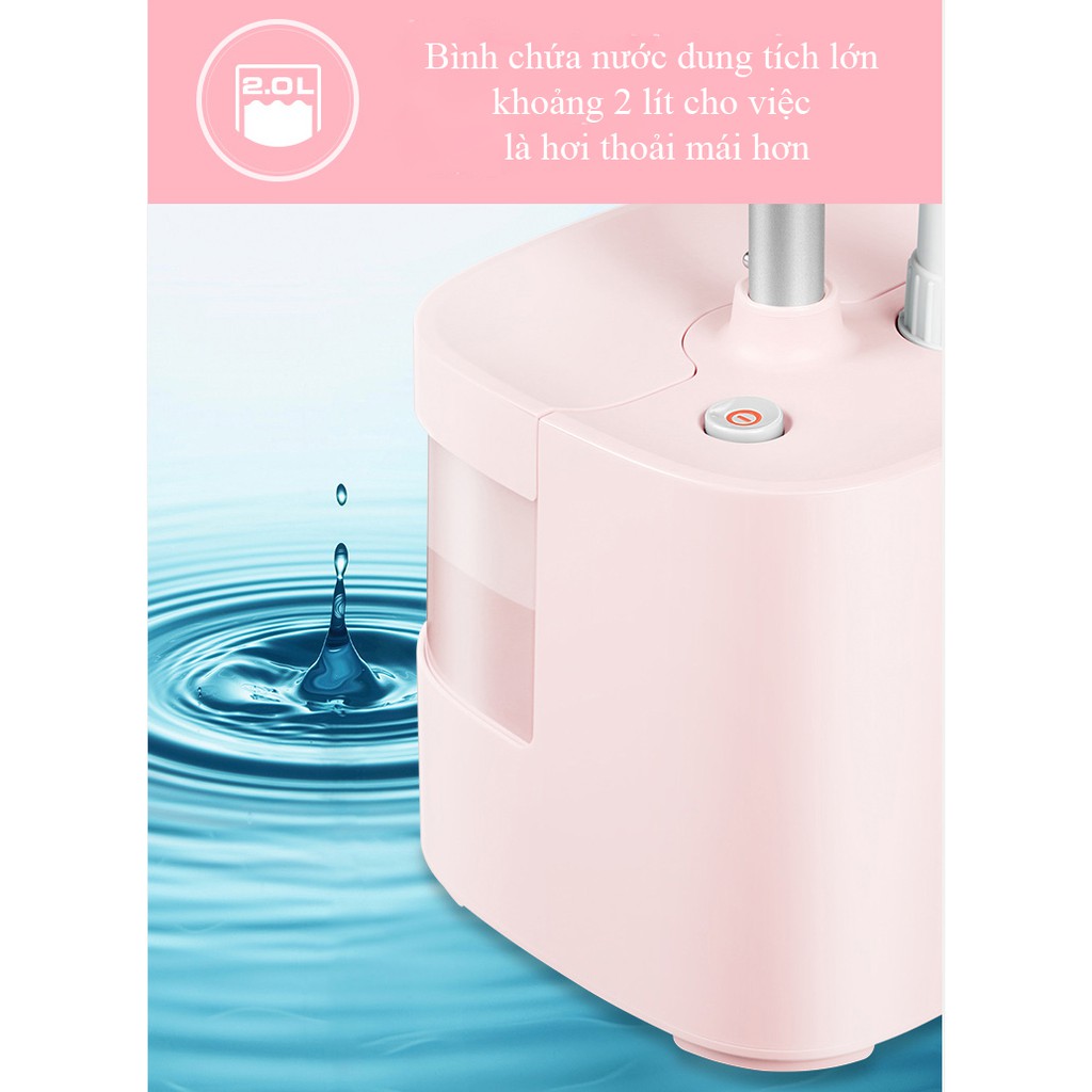 - Ngăn chứa nước có dung tích lớn 2L, đủ dùng cho 30 phút ủi bằng hơi nước và có thể tháo rời, dễ dàng thêm nước với lỗ châm nước lớn. Cực tích hợp có thể điều chỉnh để treo quần áo trong khi dùng bàn ủi và có thể thu gọn lại để cất giữ.