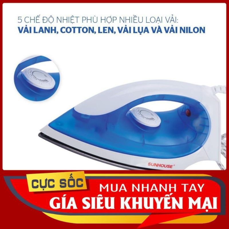 Thiết Bị Điện Gia Dụng > Thiết bị điện gia dụng nhỏ > Bàn là khô & Hơi nước || Bàn ủi Sunhouse chống dínhCòn hàng